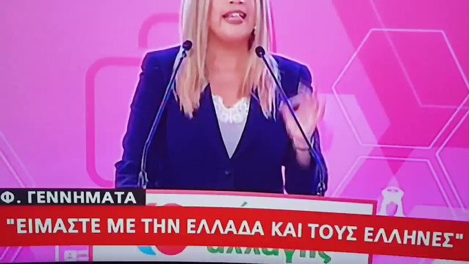 ~ Όλο και περισσότερος κόσμος αρχίζει να καταλαβαίνει και να πιστεύει σε αυτά που η ΕΛΛΗΝΙΚΗ ΛΥΣΗ υποστηρίζει από την πρώτη μέρα. Τελευταίο παράδειγμα αποτελεί η πρόεδρος του Κινήματος Αλλαγής, κ. Φώφη Γεννηματά. Μιλώντας νωρίτερα σε ημερίδα του κόμματος για την Υγεία, η κ. Γεννηματά όχι μόνο πλησίασε τη θέση της ΕΛΛΗΝΙΚΗΣ ΛΥΣΗΣ, αλλά έφτασε στο σημείο να «κλέψει» ένα από τα κεντρικά συνθήματα του κόμματος, ότι η ΕΛΛΗΝΙΚΗ ΛΥΣΗ είναι με την Ελλάδα και τους Έλληνες (προφανώς αντικαθιστώντας την ΕΛΛΗΝΙΚΗ ΛΥΣΗ με το Κίνημα Αλλαγής)!
